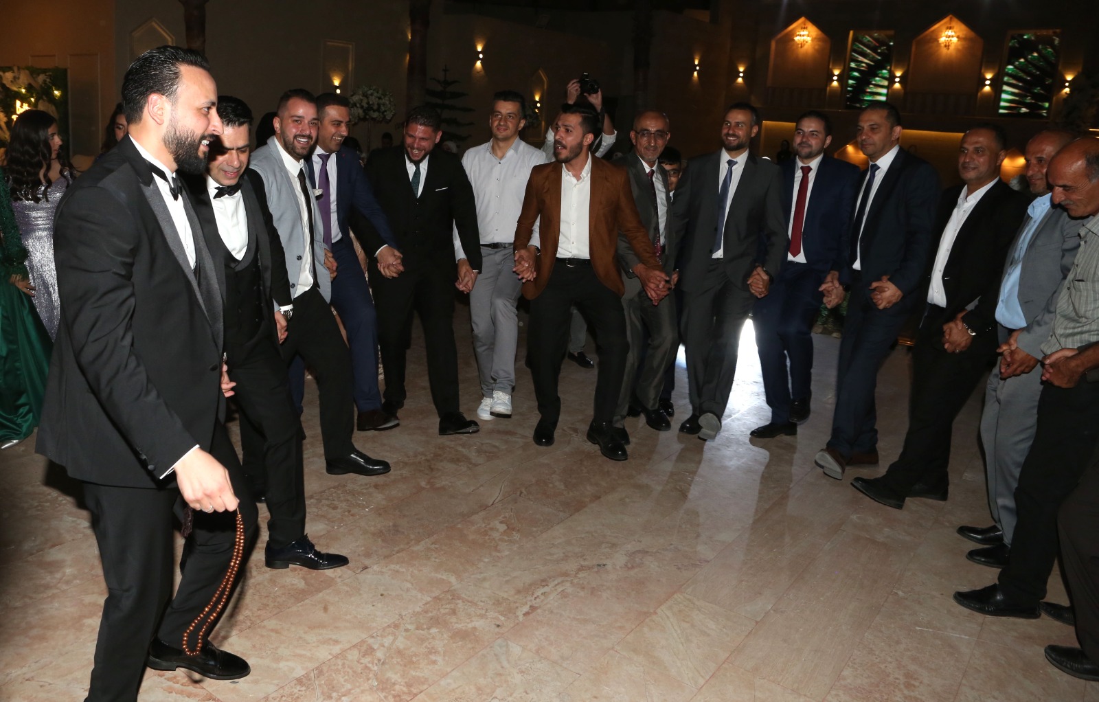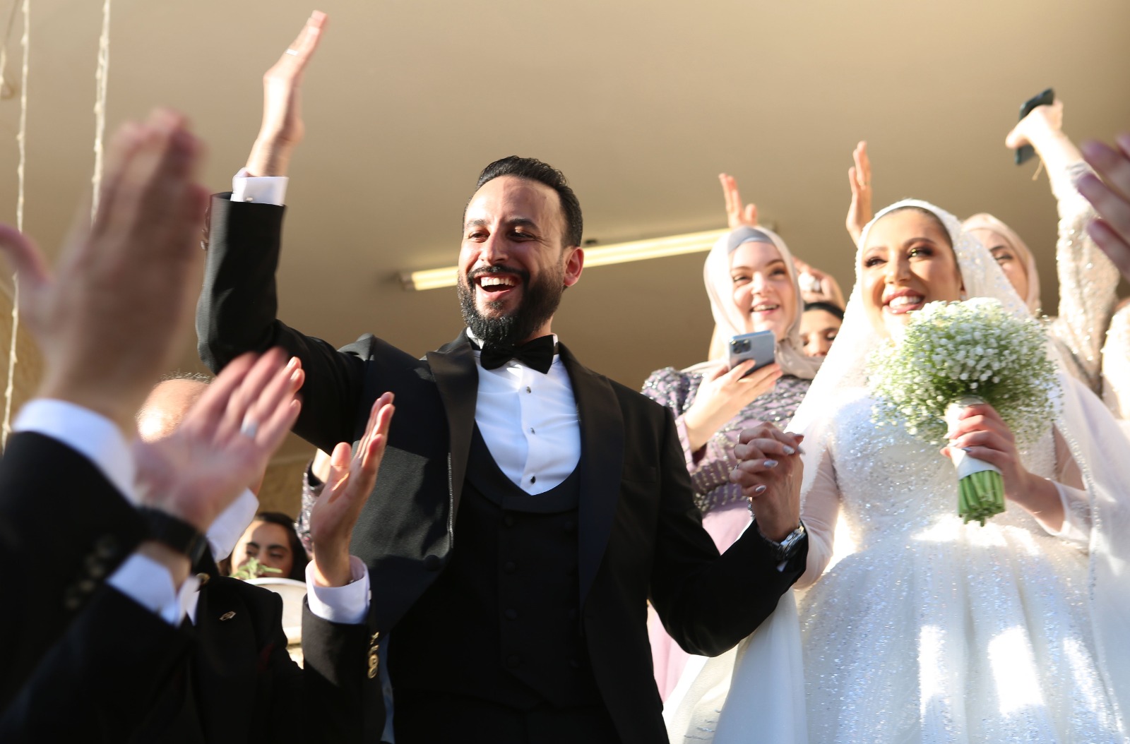 أنباء الوطن - وسط لفيف من الأهل والأنسباء والأصدقاء والجيران والزملاء الصحفيين والاعلاميين جرى في صالة بيبك bebek للاحتفال بزفاف ابن الزميل سمير الرمحي والزميلة رضى عليان الشاب الوسيم المهذب عبد الفتاح سمير الرمحي "عبود" على صاحبة الصون والعفاف إسراء حسن أبو فقوس، زينته ألوان الفرح المعطرة بتنوع الحضور من أرجاء الوطن الواحد غربي النهر وشرقيه، حيث تلاقى أهل المزيرعة "الرمحية" مع أهل بتونيا وأبو ديس والنبي صالح وجديدة جنين وعين كارم وقاقون ورنتيس وبيت اكسا وخلدا والطفيلة وتلاع العلي واربد والزرقاء، وقد أحيت الحفل في "صالات بيبك/طريق المطار" عدة فرق فنية كان ختامها إبداعات فلسطينية مميزة من فرقة حنون للفنون الشعبية