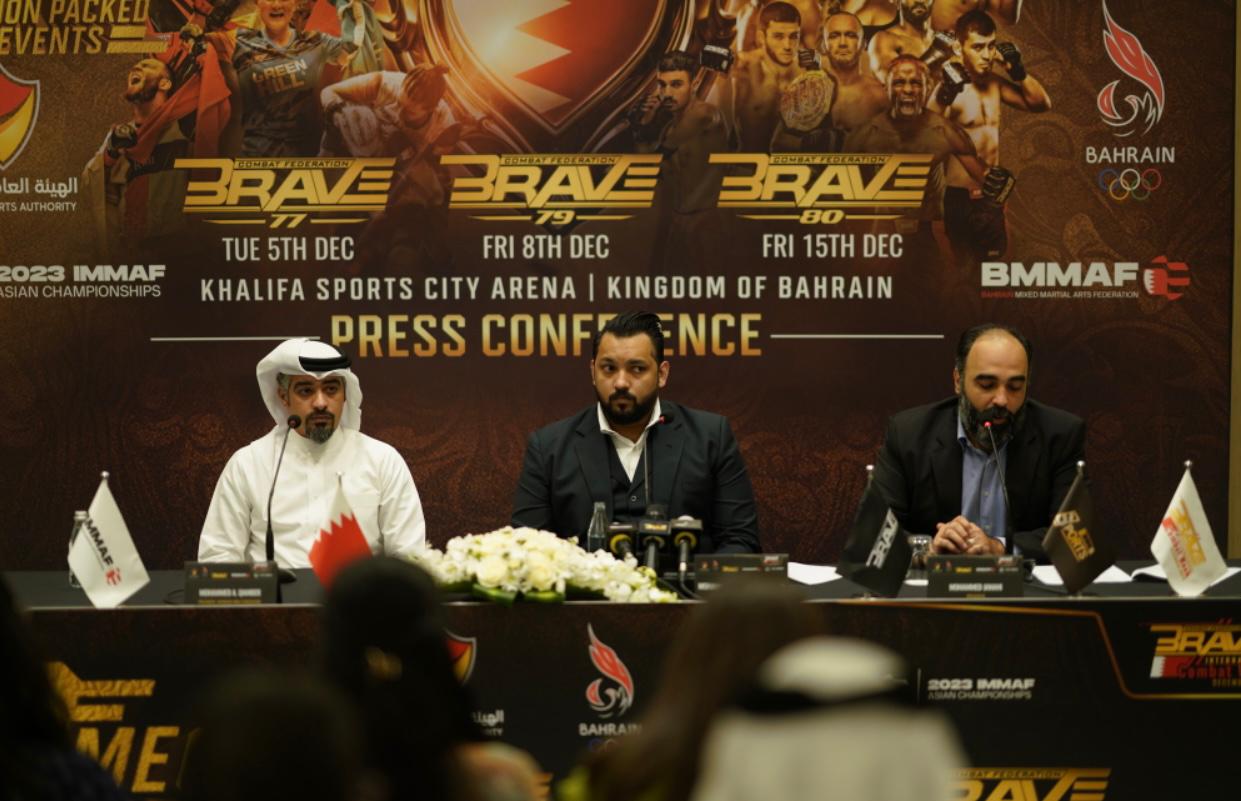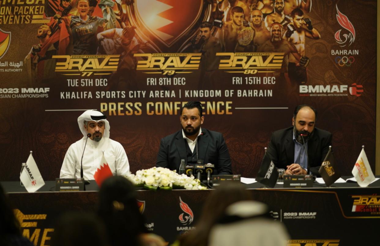 واضاف ان البحرين ستحتضن 3 نسخ من بطولات BRAVE CF لفنون القتال المختلطة للمحترفين وهي BRAVE CF 77 وستقام في يوم 5 ديسمبر، و BRAVE CF 79 في يوم 8 ديسمبر وBRAVE CF 80 وتقام يوم 15 ديسمبر المقبل كما ستشهد الفعالية إقامة النسخة الرابعة من بطولة آسيا لفنون القتال المختلطة للهواة".