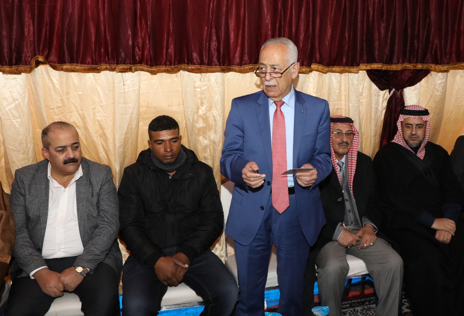 مندوبا عن الملك وولي العهد.. رئيس الديوان الملكي يقدم التعازي لذوي الشهيد النعيمي