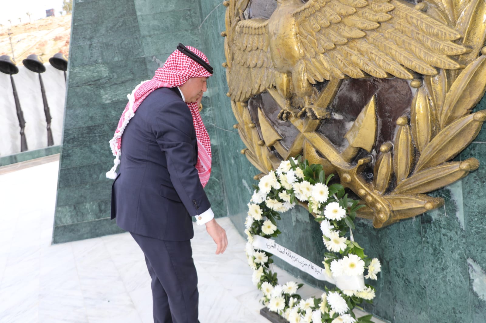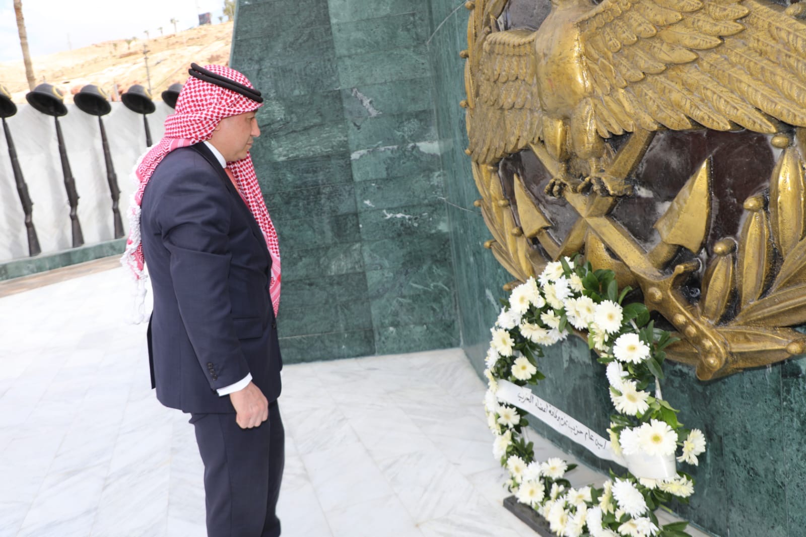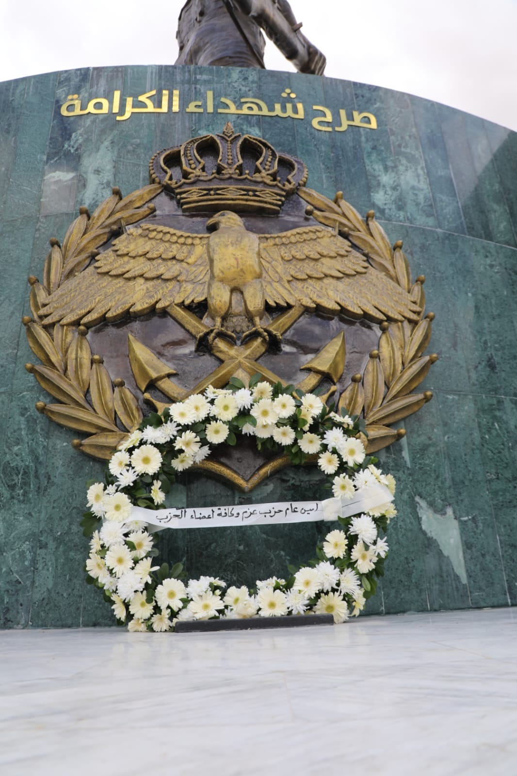 أنباء الوطن - قام أمين عام حزب عزم المهندس زيد نفاع وكبار رجالات الجيش المتقاعدين المنتسبين في الحزب بزيارة إلى نصب الجندي المجهول في منطقة الكرامة، بمناسبة الذكرى السنوية السادسة والخمسين لمعركة الكرامة الخالدة.