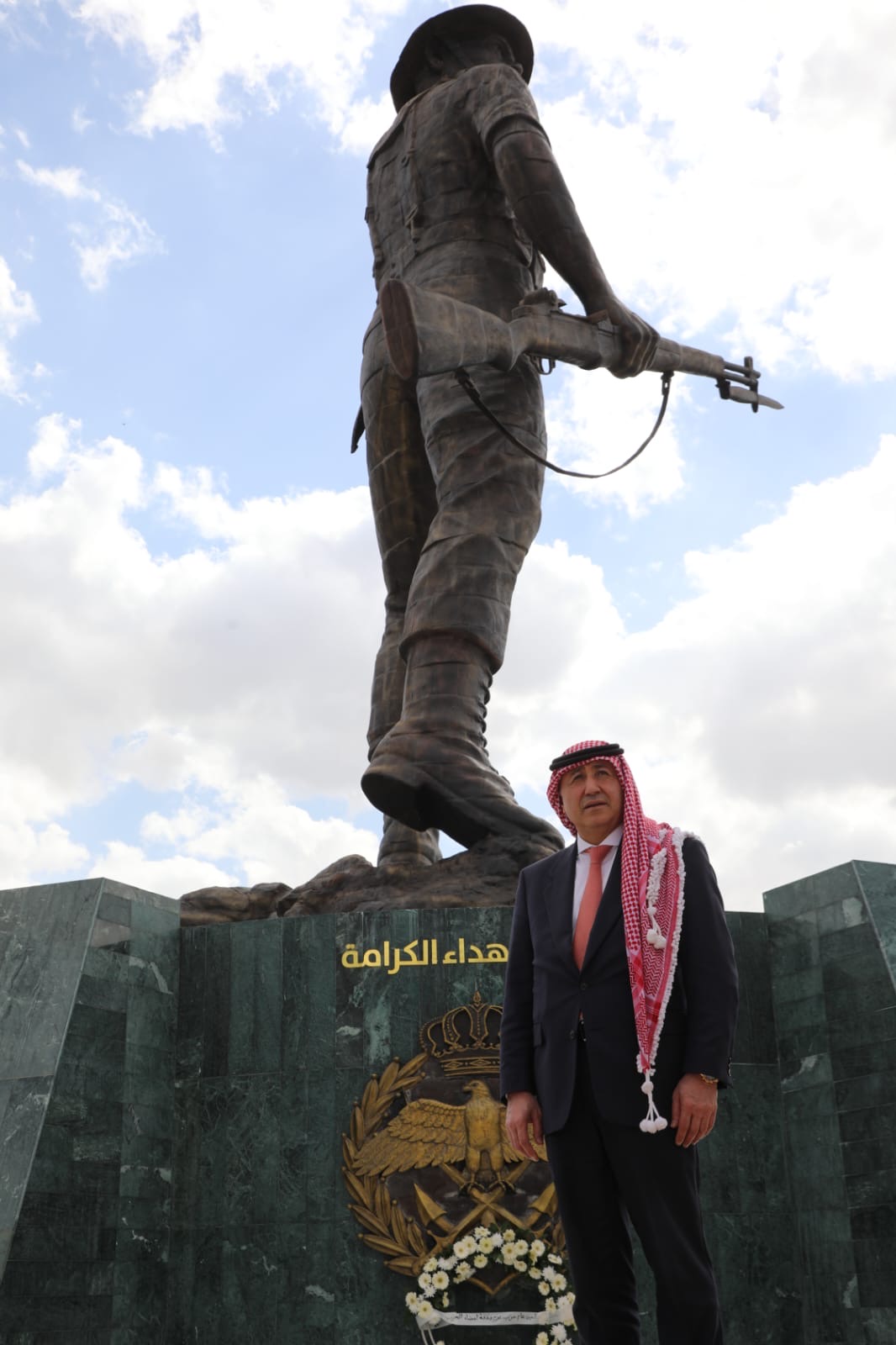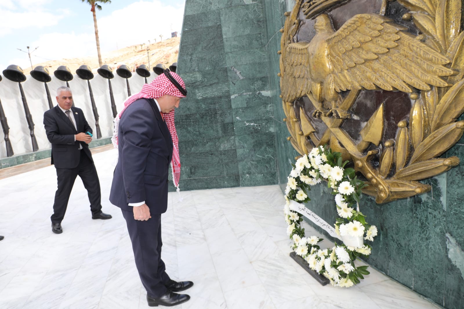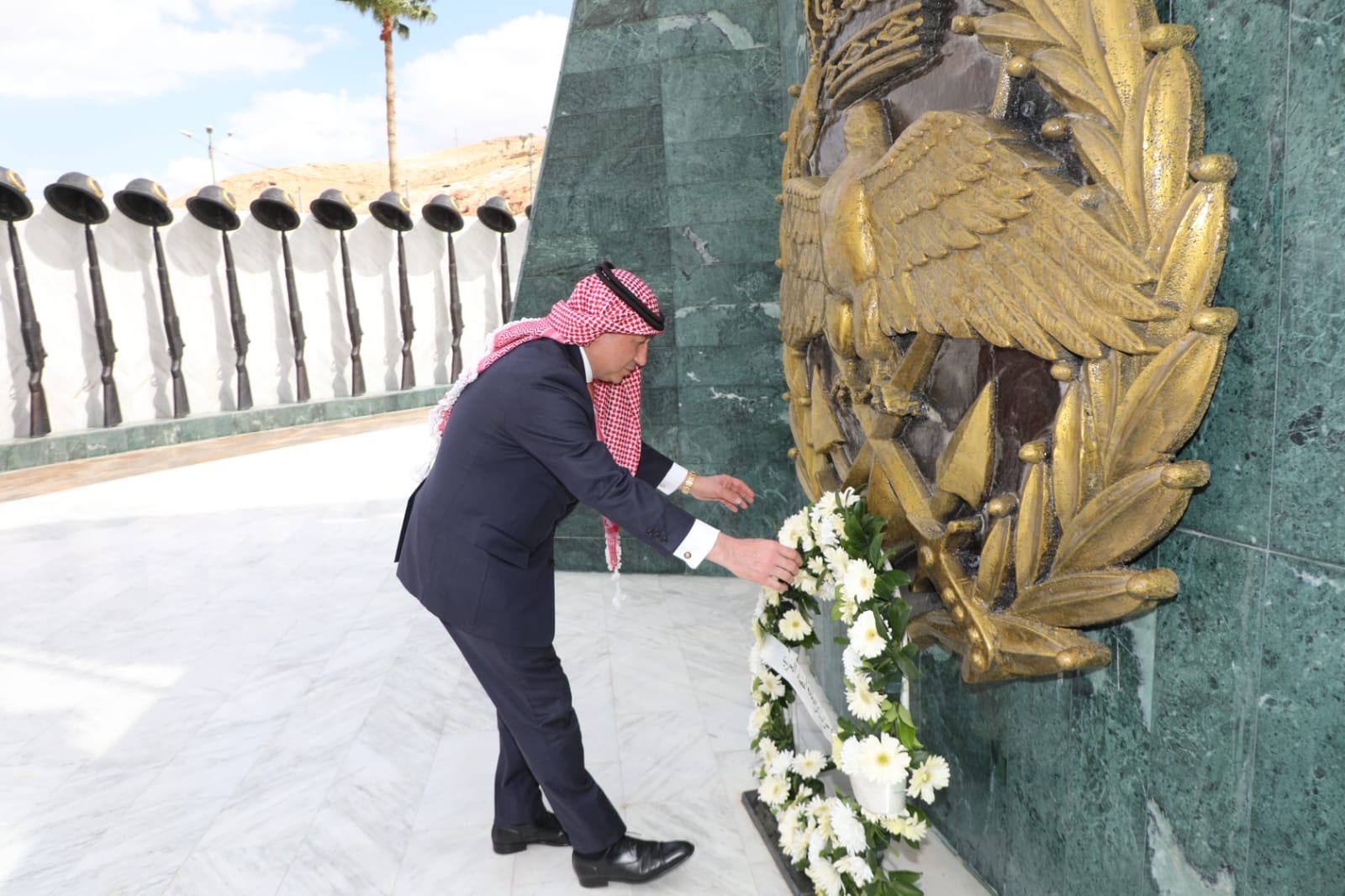 أنباء الوطن - قام أمين عام حزب عزم المهندس زيد نفاع وكبار رجالات الجيش المتقاعدين المنتسبين في الحزب بزيارة إلى نصب الجندي المجهول في منطقة الكرامة، بمناسبة الذكرى السنوية السادسة والخمسين لمعركة الكرامة الخالدة.