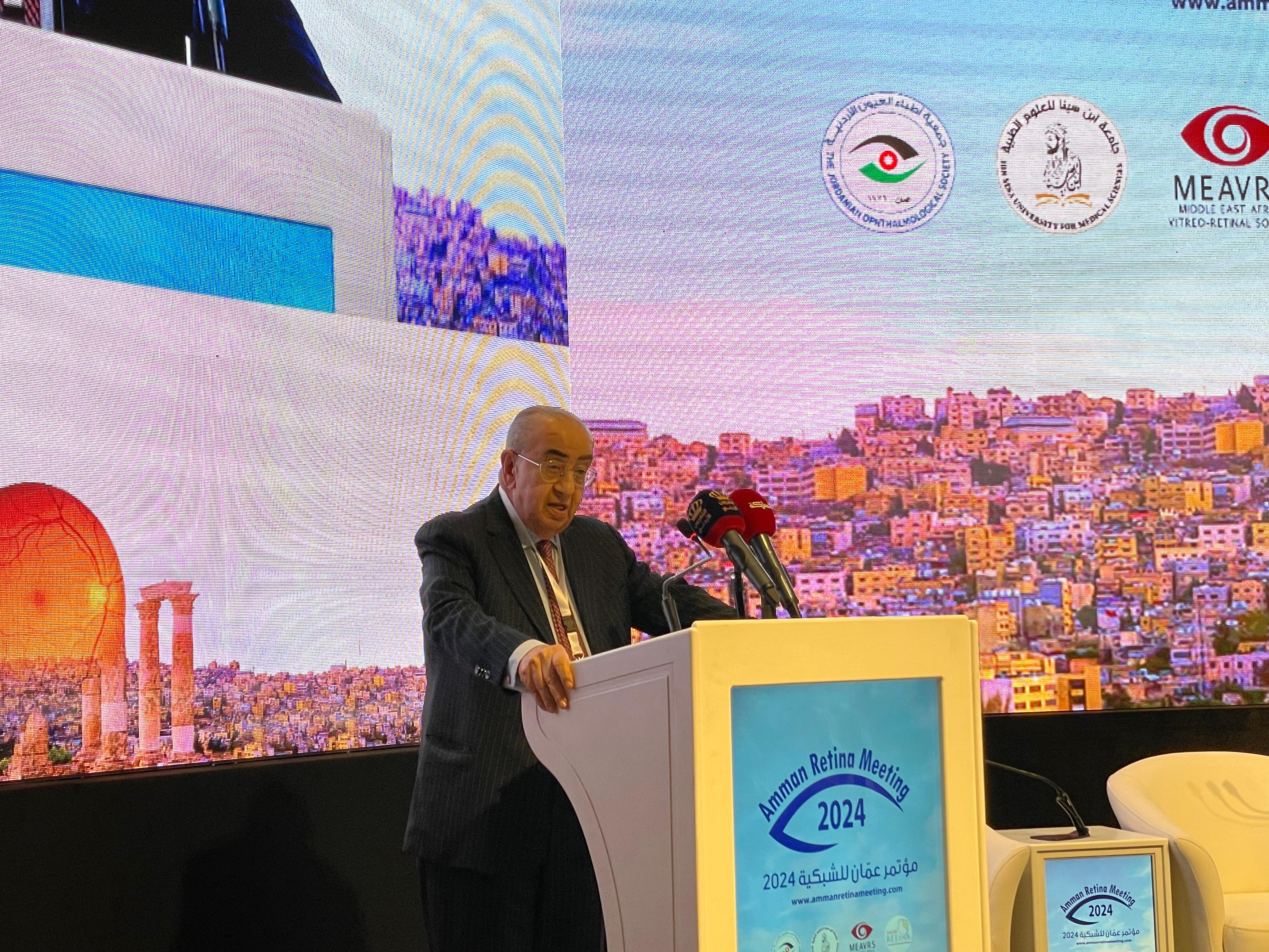 وقال العين القسوس، خلال كلمته في المؤتمر الذي يستمر لمدة ثلاثة أيام، إن المؤتمر يشكل فرصة لبحث آخر المستجدات في أبحاث الشبكية وتبادل الخبرات والمعلومات، وأن العاصمة عمان تتشرف باحتضان هذا المؤتمر الهام في المسيرة الطبية.