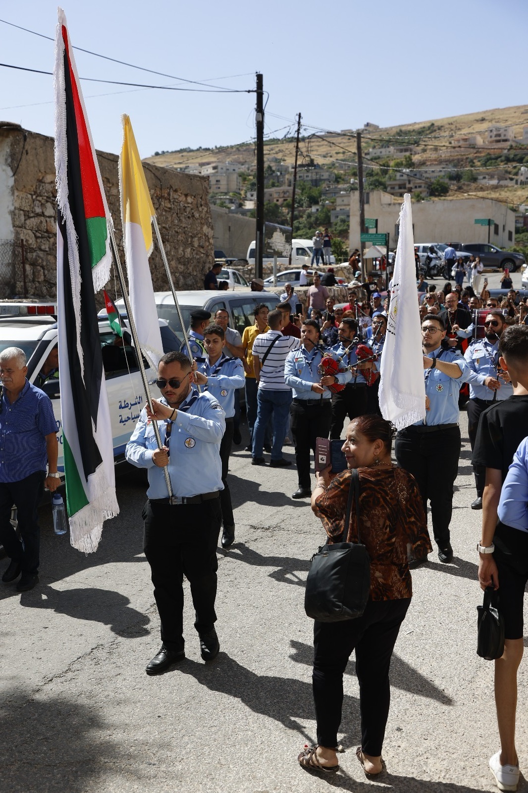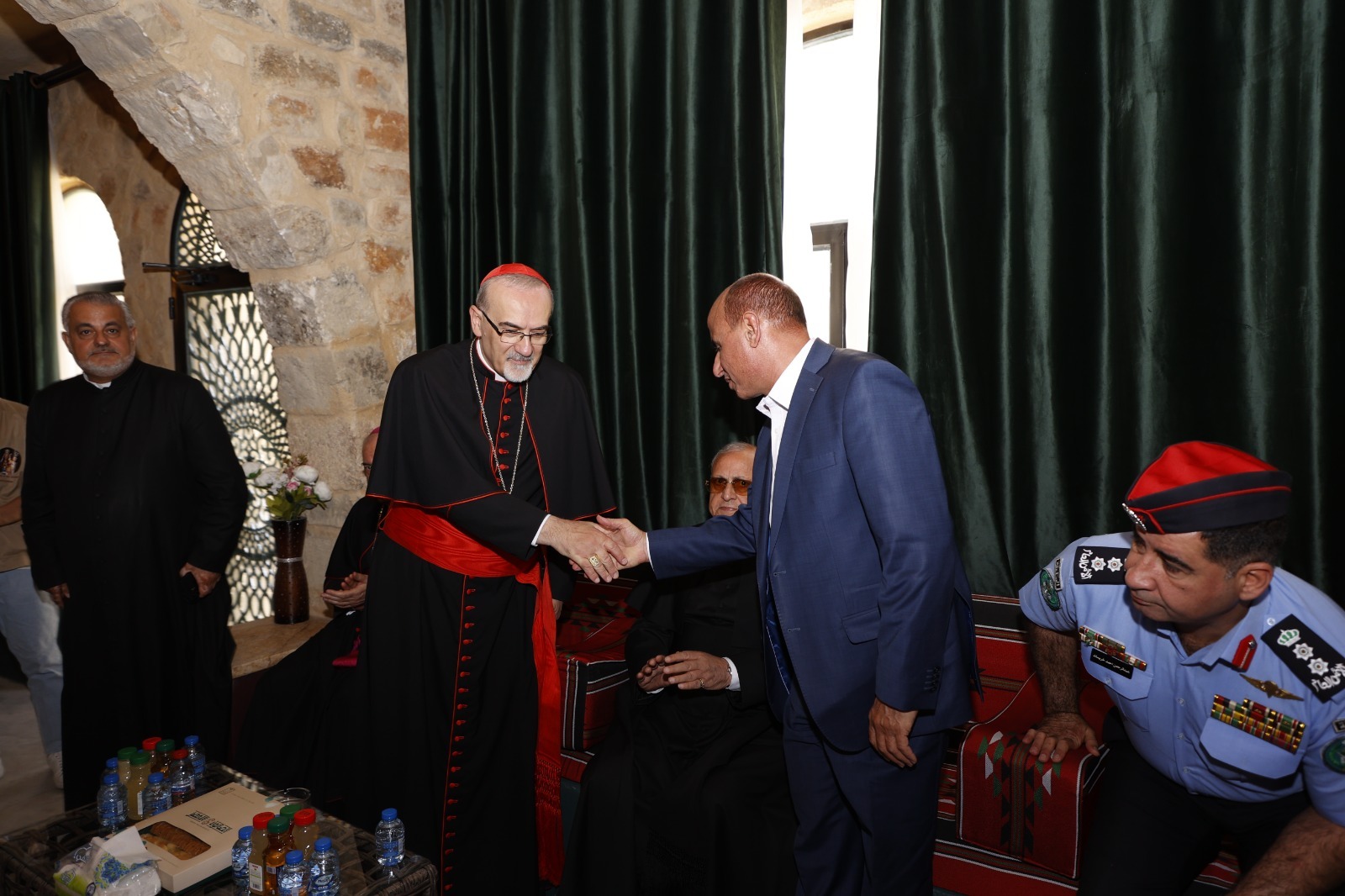 وكان باستقبال نيافة الكاردينال محافظ عجلون الدكتور قبلان الشريف، ونائب مدير شرطة عجلون العقيد عبد الرحمن خريسات، ونواب المحافظة، وكافة رؤساء الأجهزة المدنيّة والأمنيّة. وقال عطوفة المحافظ إنّنا نعبّر عن سرورنا الكبير بهذا الاحتفال الذي يحلّ علينا في غمرة احتفالات الوطن باليوبيل الفضي لجلالة الملك عبدالله الثاني، ويدلّ على وحدتنا الوطنيّة التي نعتزّ بها في هذا الوطن الحبيب بين المسلمين والمسيحين. بدوره، عبّر الكاردينال عن شكره وتقديره لكلّ الجهود التي بذلت في أجل إنجاح هذا اليوم الذي يأتي، كما قال، في ختام الاحتفال بعيد الأضحى المبارك، وكأنّ العناية الربانيّة تريدنا أن نواصل الاحتفالات الدينيّة بتشاركيّة ووحدة وطنيّة غاليّة تجمعنا بهذه الأرض الواحدة والملك الواحد والأم الواحدة مريم المكرّمة في الإنجيل والقرآن