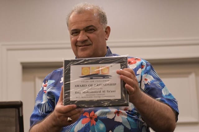 المنظمه الأمريكية لتحدي السيارات الشمسية تكرم المهندس محمد نواف الطعاني بلقب جراند مارشال وتمحنه درع الصداقة