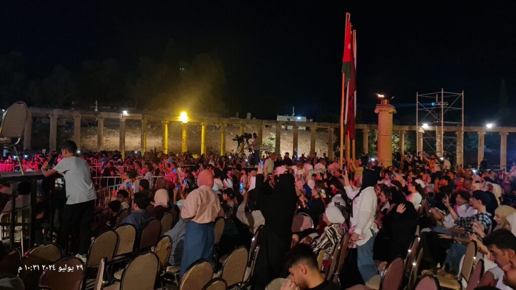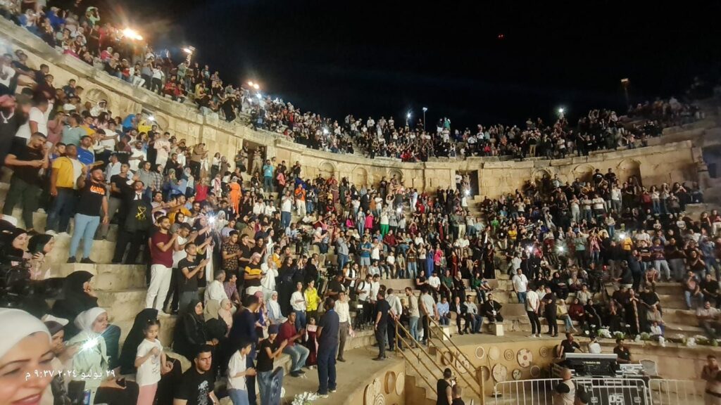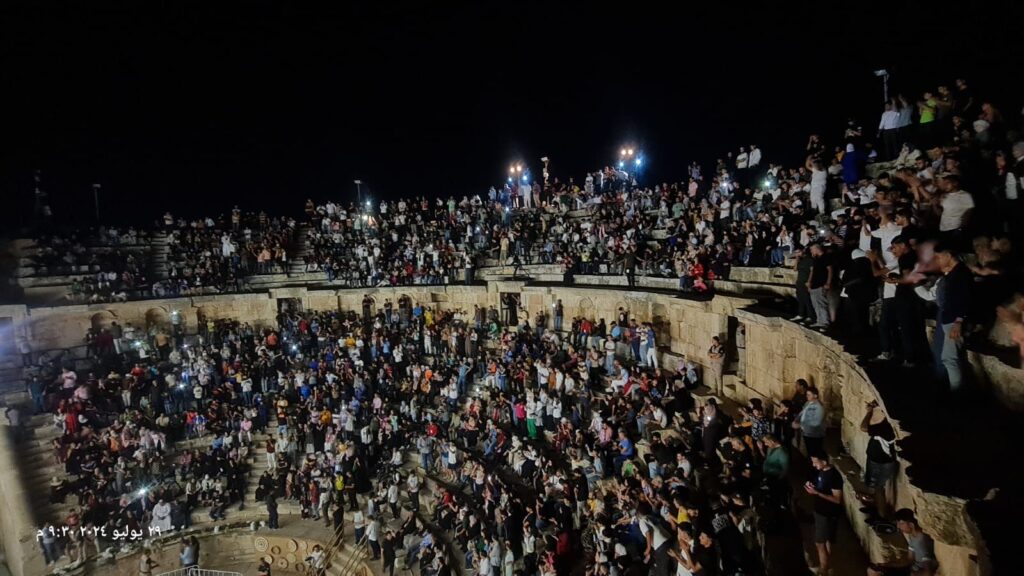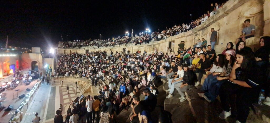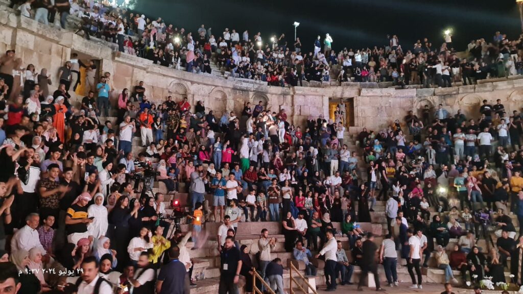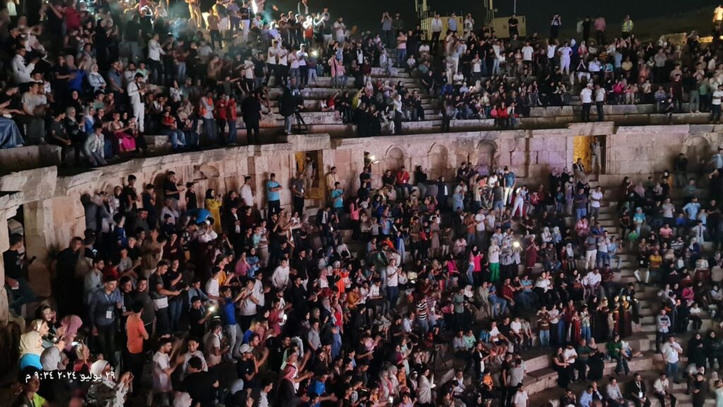 توافدت الجماهير إلى حضور الحفلات والفعاليات التي اقيمت في الساحة الرئيسة والمسرح السمالي، وذلك ضمن فعاليات مهرجان جرش للثقافة والفنون في دورته 38.