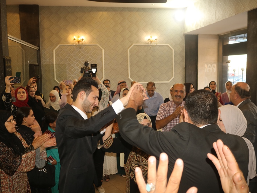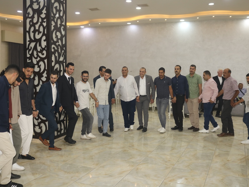 وشكر والد العريس سامي عليان ابو نزيه الحضور على تلبية الدعوة ملتمساً العذر لمن لم يستطيع الحضور لظروف خاصة . وساد الفرح اغاني ودبكات واهازيج وطنية وتراثية .