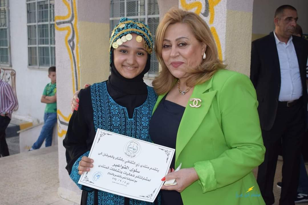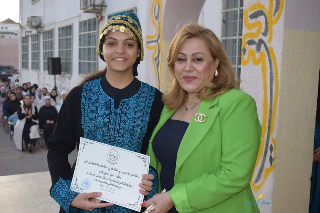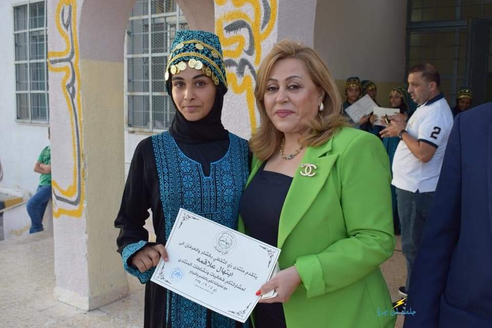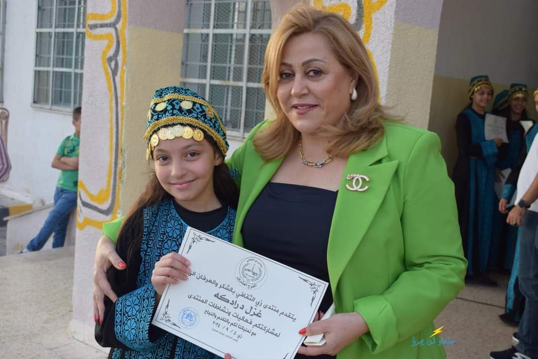 وبختام الفعالية قدمت طالبات َمن منتدى الطفل العربي والذي يرأسه السيد كمال قطيشات فقرات فنية ودبكات شعبية نالت استحسان الجميع وسلمت راعية الحفل سعادة النائب هدى نفاع دروعا تكريمية قدمها المنتدى للطلبة المتفوقين.