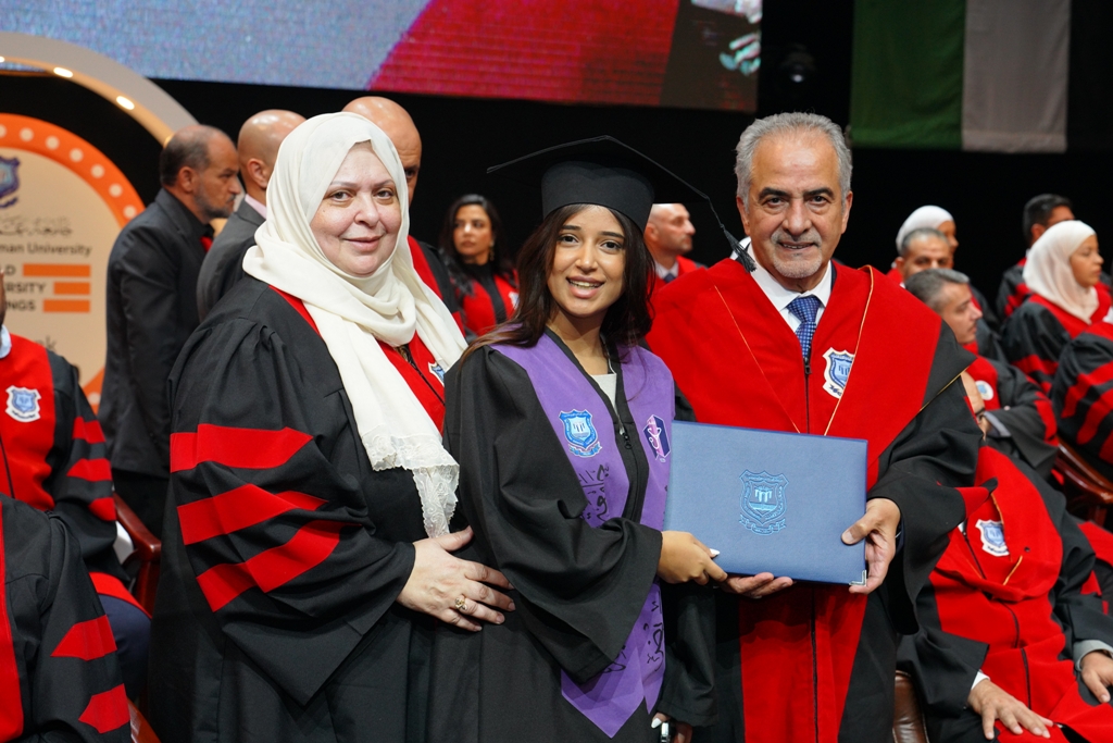 رعى الاستاذ الدكتور ساري حمدان رئيس جامعة عمان الأهلية مساء أمس 30-9-2024 على مسرح الأرينا احتفال الجامعة بتخريج طلبتها للفصل الصيفي 2023-2024 من فوج اليوبيل الفضي ، بحضور عطوفة السيد عمر الحوراني نائب رئيس هيئة المديرين للجامعة ، وعدد من أعضاء مجلس الأمناء ، وبحضور أ.د. أنس السعود نائب رئيس الجامعة لشؤون العلاقات الدولية والجودة ، ومساعدي ومستشاري الرئيس ، والسادة العمداء وأعضاء الهيئة التدريسية وعدد من أعضاء الهيئة الإدارية وحشد كبير من ذوي الطلبة الخريجين والمدعوين .