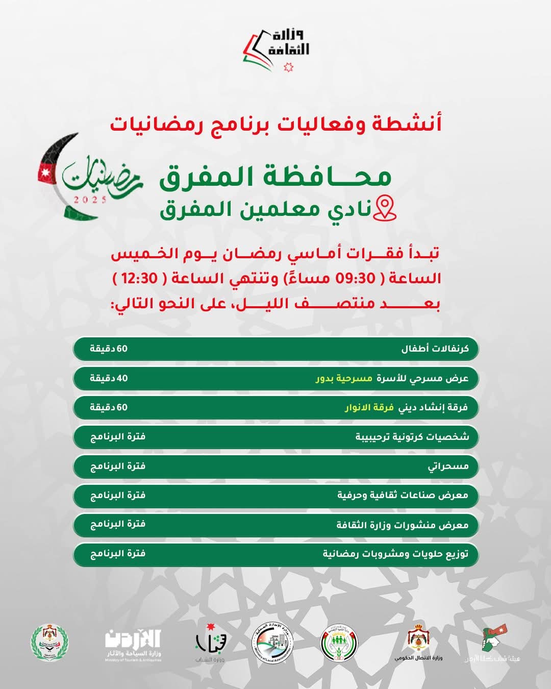 وزارة الثقافة تدعو للمشاركة في الفعاليات "الرمضانية" التي تنطلق اليوم الخميس