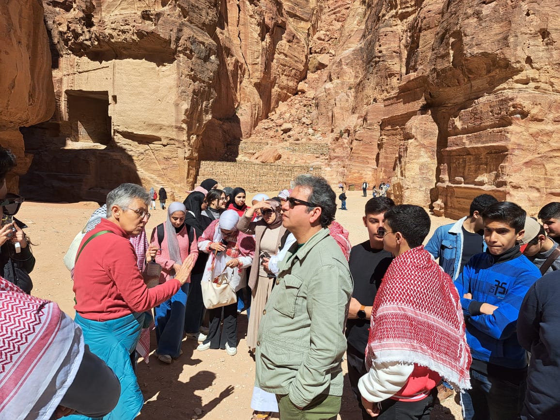 وفي سياق الزيارات الميدانية التي تُعدّ جزءاً رئيسياً من البرنامج، نظّم الطلاب جولات تعليمية إلى أبرز المواقع الأثرية في المملكة. ففي 26 فبراير، قام طلاب مدرسة الملك عبد الله الثاني للتميّز في معان بزيارة موقعي جرش وعجلون، حيث تعرّفوا على تاريخهما وقيمتهما التراثية برفقة الخبيرة معكرون، كما أجروا مقابلات مع زوّار أجانب لتعزيز أبحاثهم الميدانية. أما طلاب مدرسة الملك عبد الله الثاني للتميّز في الطفيلة، فقد زاروا مدينة البترا، حيث استكشفوا تاريخها العريق، كما شملت جولتهم زيارة قلعة الشوبك، حيث التقوا بممثل وزارة التربية والتعليم والمشرف على البرنامج، الأستاذ مجدي البدور، الذي تحدث عن ارتباط سكان الشوبك الوثيق بالقلعة وأهميتها التراثية.