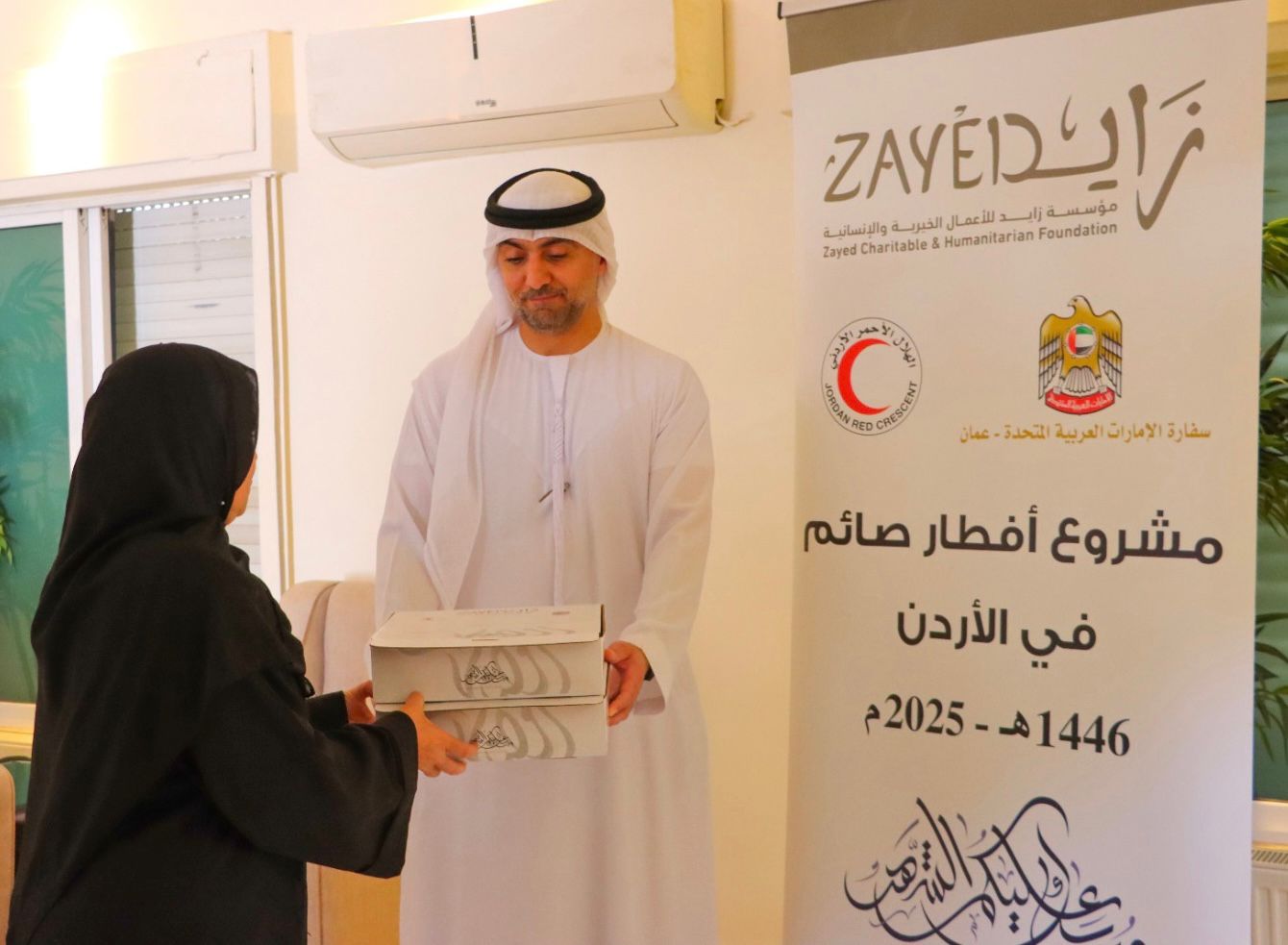 على صعيد متصل، تواصل مؤسسة زايد للأعمال الخيرية والإنسانية تنفيذ برامجها الرمضانية في المملكة الأردنية الهاشمية بإشراف من فريق المؤسسة وسفارة دولة الإمارات في عمّان، حيث شارك فريق المؤسسة تناول وجبات الإفطار مع العائلات المستحقة وبعض الجمعيات التي ترعى الأيتام إضافة إلى مخيمات اللاجئين.