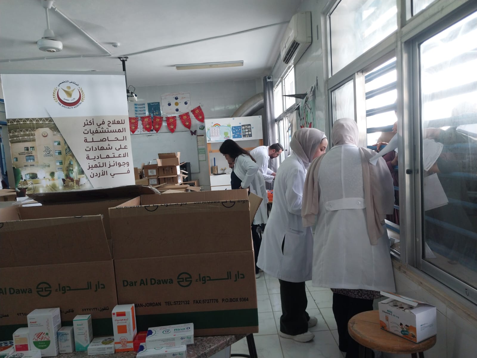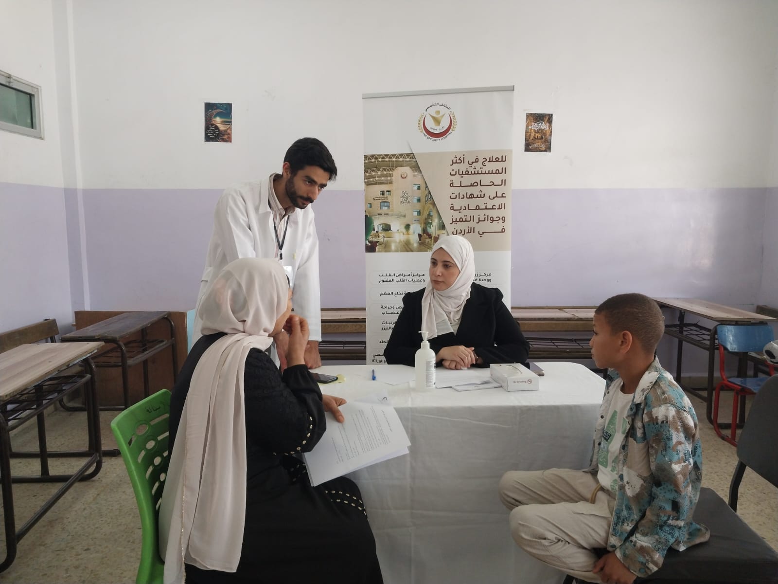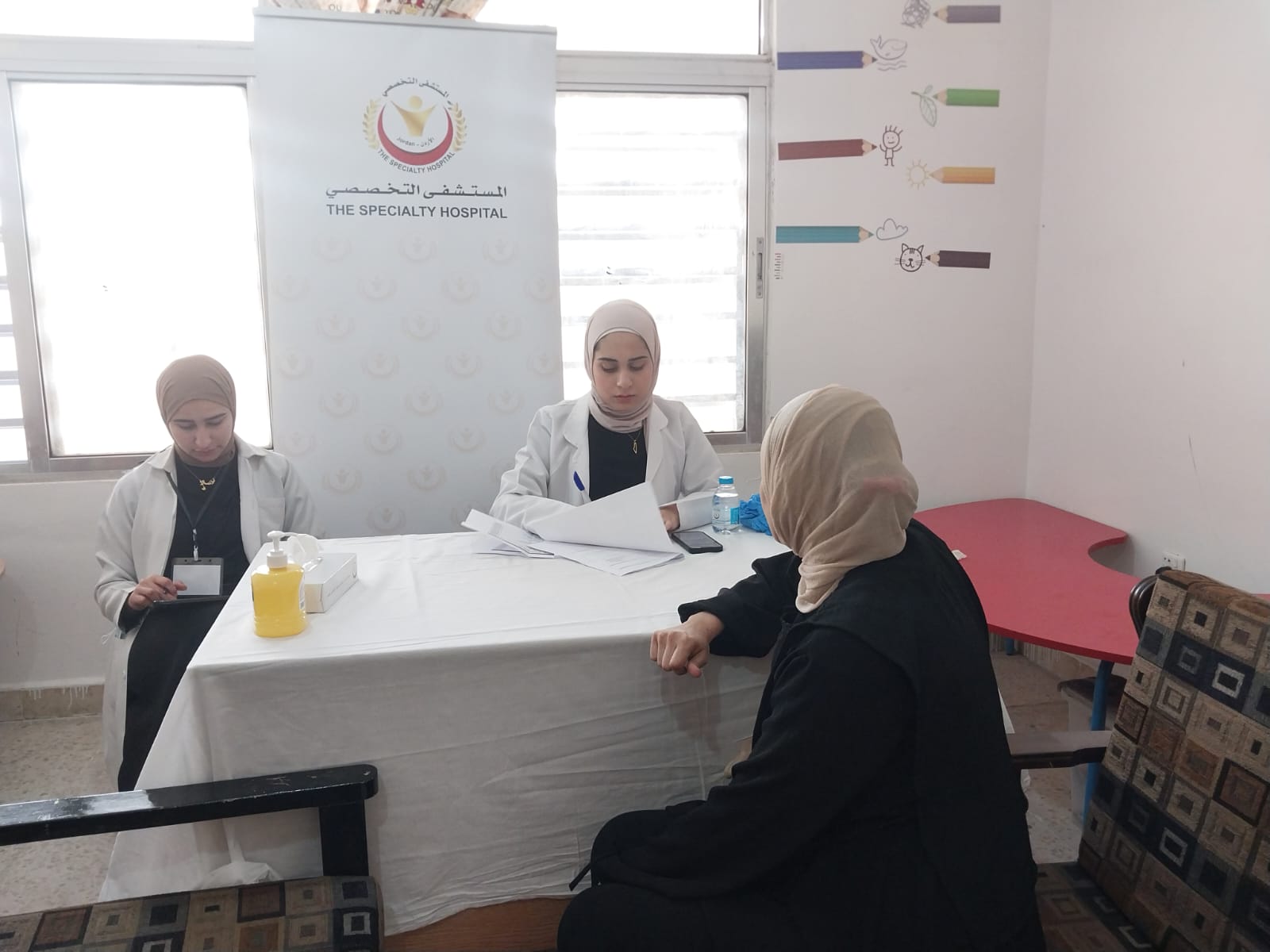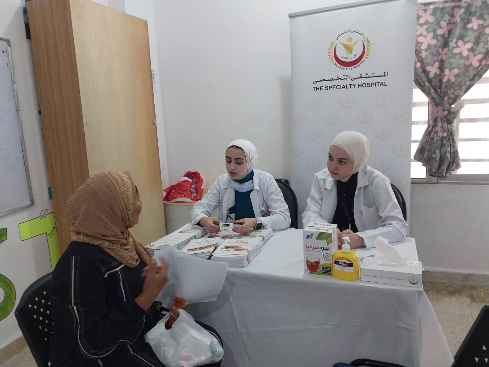 المستشفى التخصصي يقيم يوماً طبياً مجانياً في غور المزرعة بمحافظة الكرك بالتعاون مع مبادرة الطب العالمي ومتطوعين الاغوار داخل مدرسة طواحين السكر الثانوية للبنات يوم السبت الموافق ١٢-٤-٢٠٢٥.