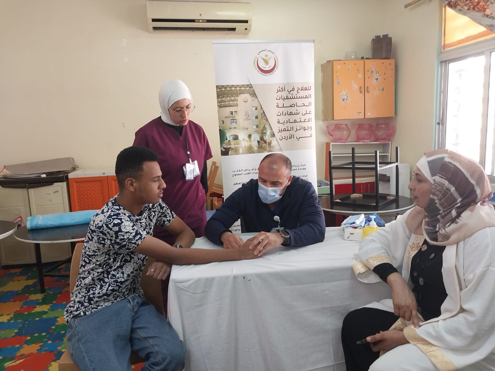 كجزء من المسؤولية في الخدمة المجتمعية وحرصاً على إيصال الرعاية الصحية للمناطق الأقل حظاً، نظّم المستشفى التخصصي يوماً طبياً مجانياً في منطقة غور المزرعة بمحافظة الكرك، وذلك بالتعاون مع مبادرة الطب العالمي ومتطوعوا الاغوار الذين حصلوا على جائزة الحسين للعمل التطوعي .