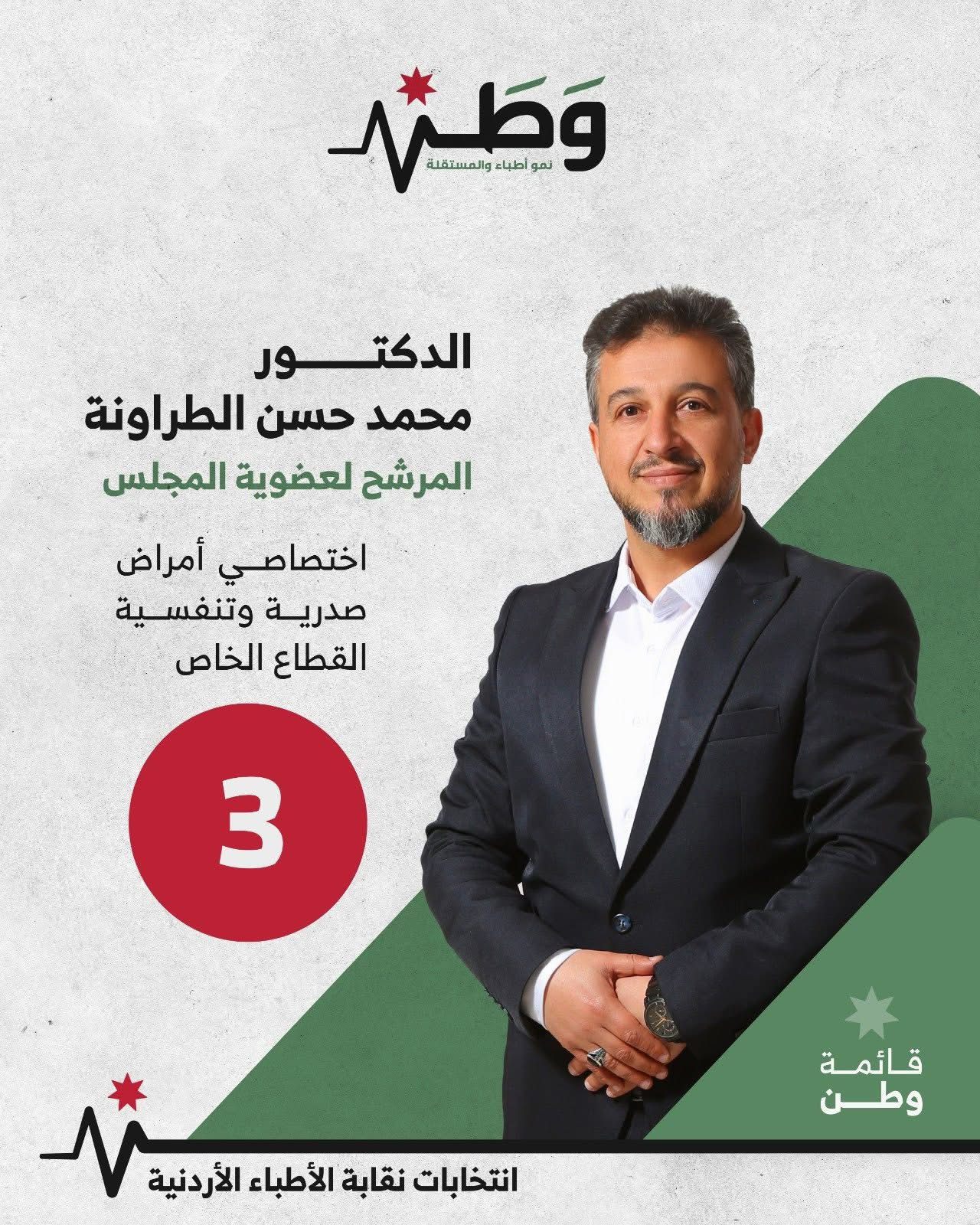 كما فاز الدكتور محمد الطراونة بعضوية نقابة الأطباء