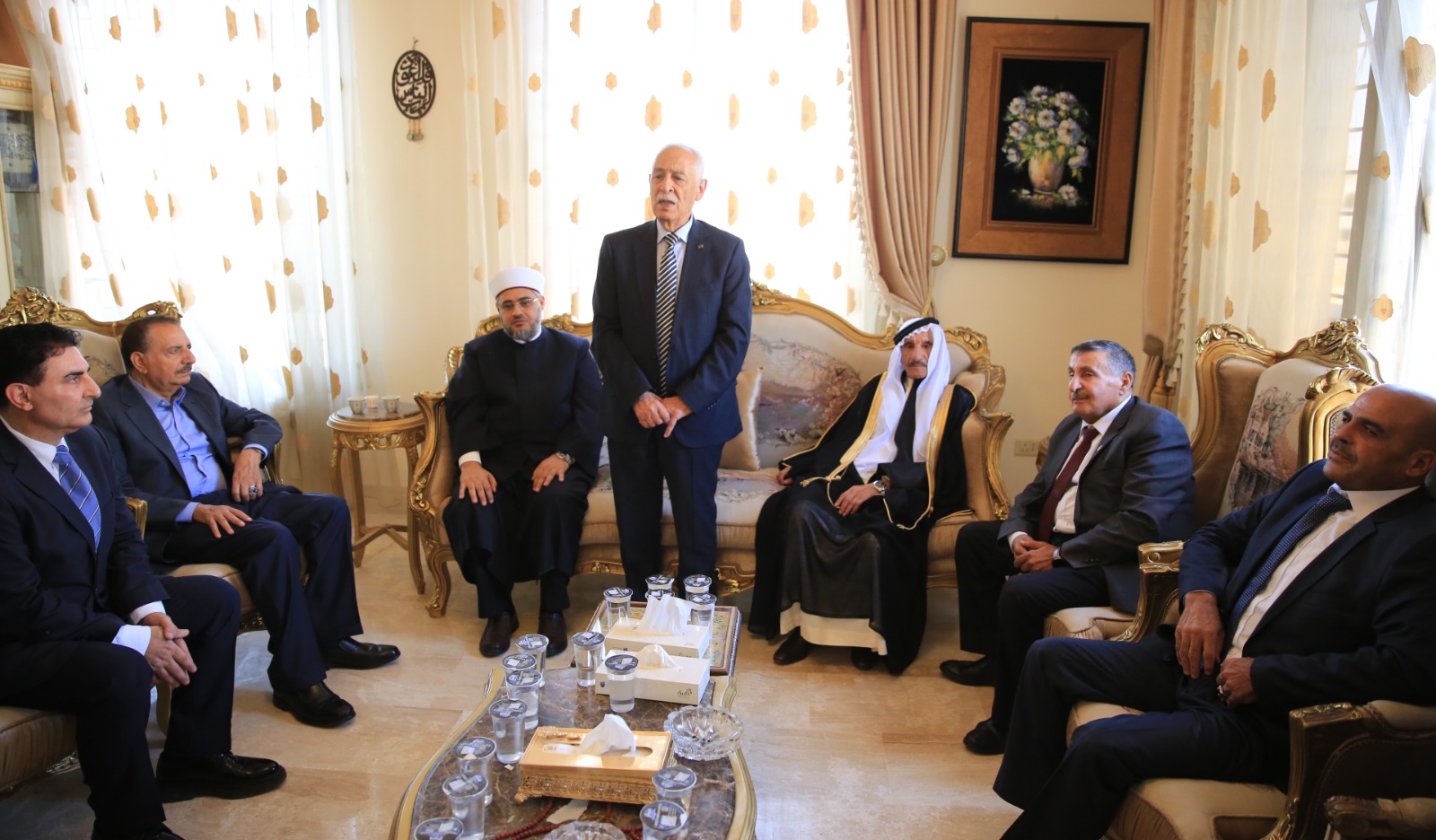 *وفي لواء الموقر،* نقل العيسوي، خلال زيارته بيت عزاء المرحوم الدكتور سعود فهاد الخريشا، تعازي ومواساة جلالة الملك وسمو ولي العهد، إلى ذوي الفقيد وعموم عشيرة الخريشا، سائلا المولى عز وجل أن يتغمده بواسع رحمته.