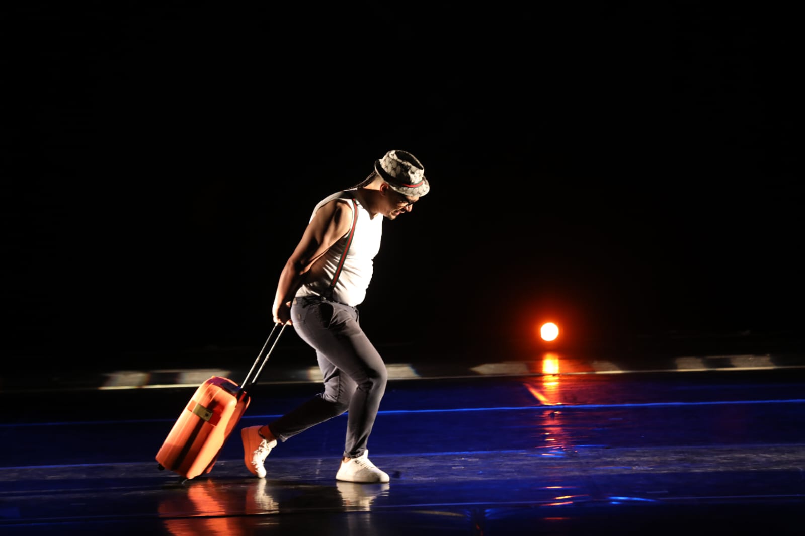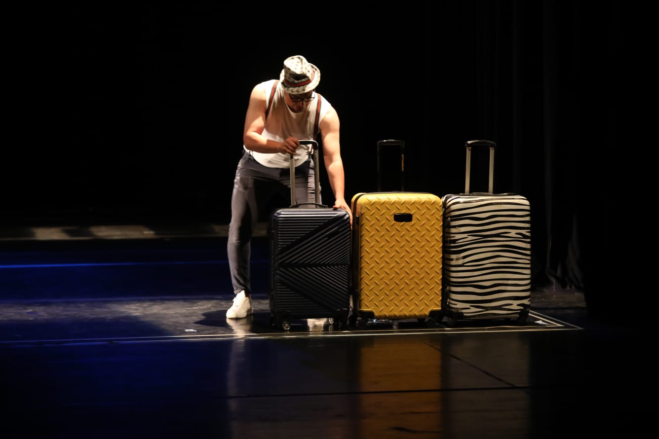وفي إطار مونودرامي متماسك، يقف "الممثل – المسافر" ليحمل حقائبه المادية والرمزية، باحثًا عن إجابة لسؤال وجودي يتردد طيلة العرض: "إلى أين؟". فالمسرحية لا تكتفي بعرض مشهد فردي عن الرحيل، بل تحوّله إلى سؤال جماعي يمسّ كل من اضطر أن يغادر، أن يهاجر، أن يُهجّر، أو أن يرحل مجبرًا من وطن بات غير قابل للسكن، بفعل الحروب والدمار والنكبات المتتالية، وحتى الإحتلال في العالم العربي.