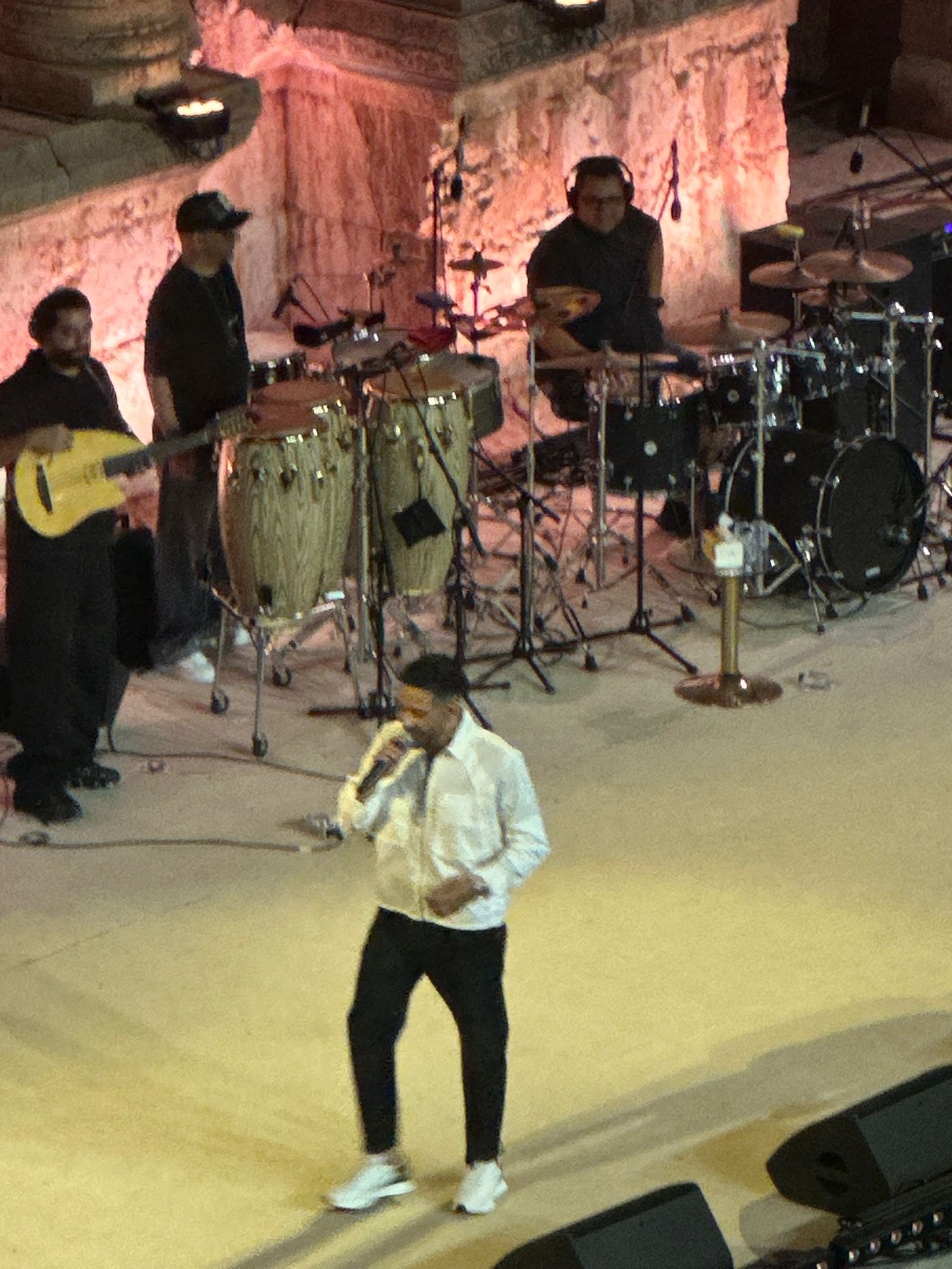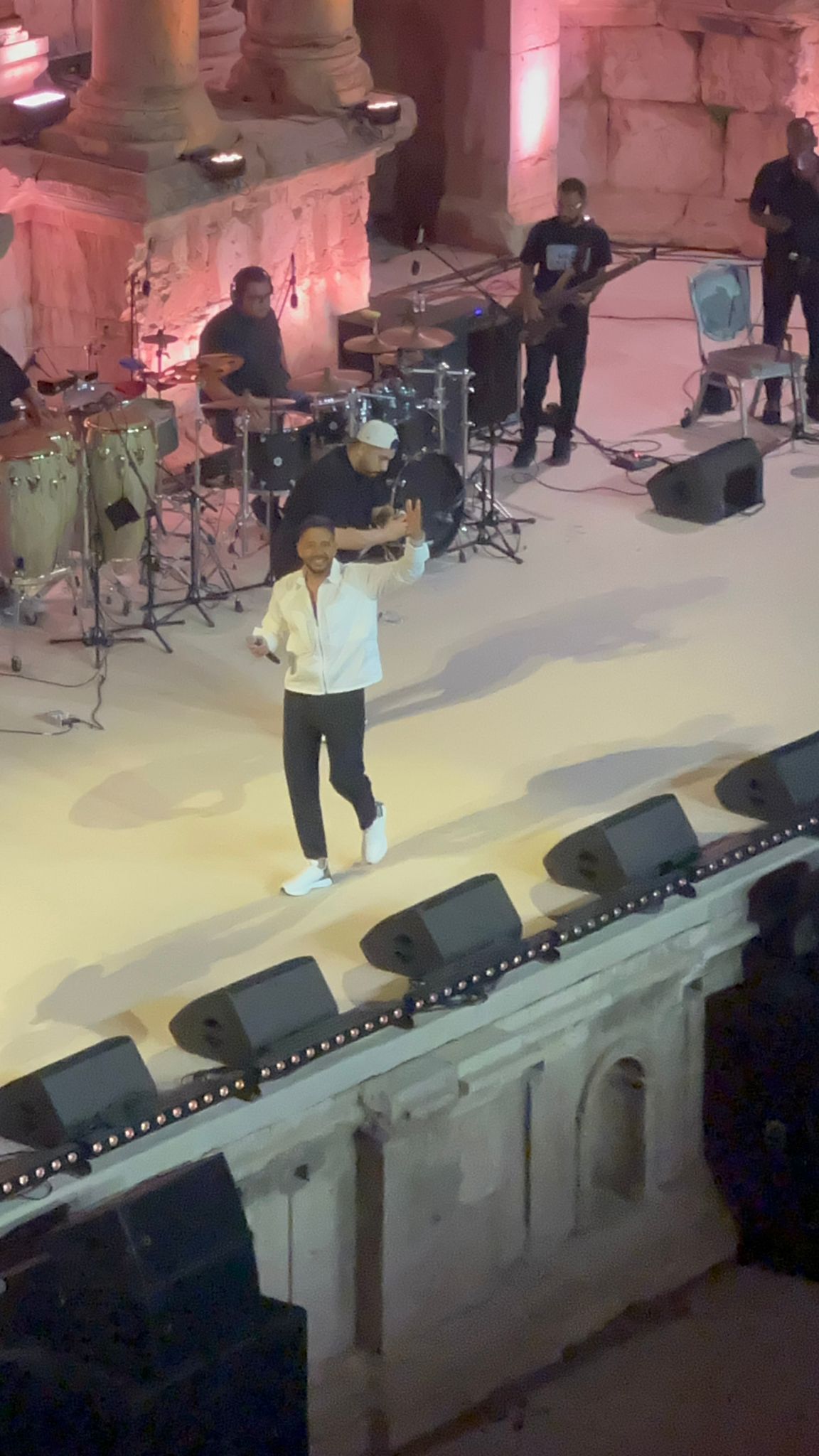 منذ اللحظة الأولى لدخوله المسرح، اشتعلت المدرجات بهتافات الجمهور الذين توافدوا ، مرددين أغانيه بصوت واحد، ورافعين هواتفهم لتوثيق كل لحظة.