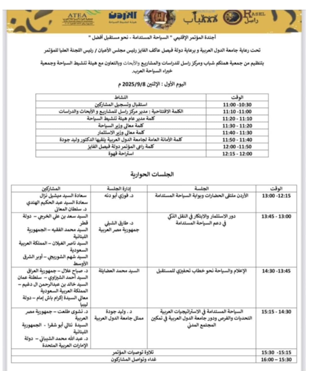 آخر هذه المناسبات والفعاليات كان يوم أمس الإثنين، – ولم نكن على علم به – ، حين اقيم وافتتح مؤتمر إقليمي بعنوان” السياحة المستدامة نحو مستقبل أفضل”، والذي اقيم في فندق لاند مارك بعمّان وكان برعاية رئيس مجلس الأعيان فيصل الفايز وحضور عدد كبير من المسؤولين،حيث في هذا المؤتمر كانت الملاحظات التالية.