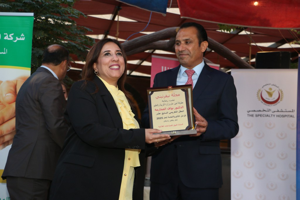من جهتها، أكدت المتحدثة بأسم المجلة ومديرة تحريرها الزميلة عفاف شرف، أن المجلة حافظت على استمرارية هذا التقليد السنوي منذ عام 2008 بدعم ورعاية شخصيات وطنية ودولية بارزة، معتبرة أن التكريم يعكس مكانة الطلبة الأوائل الذين يشكلون أمل الوطن ومستقبله. وأشارت إلى أن ثقة جلالة الملك عبدالله الثاني بالشباب المتفوقين تعزز رسالتهم في البناء والإنجاز.