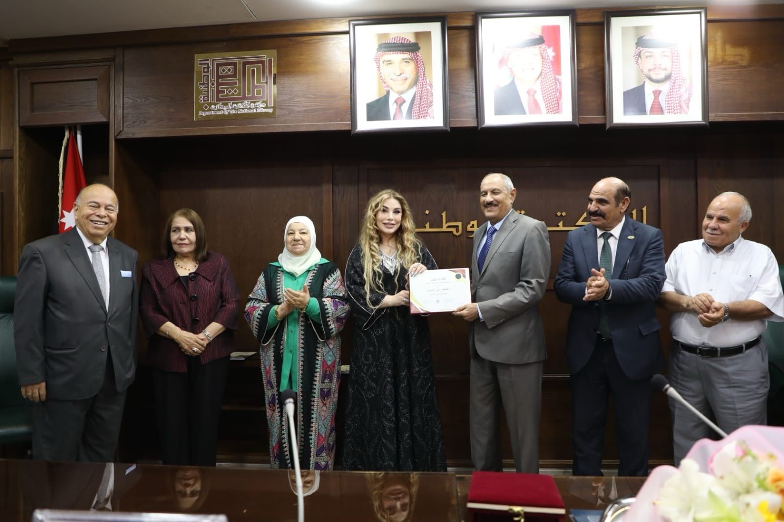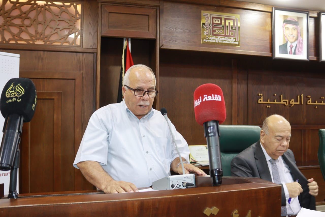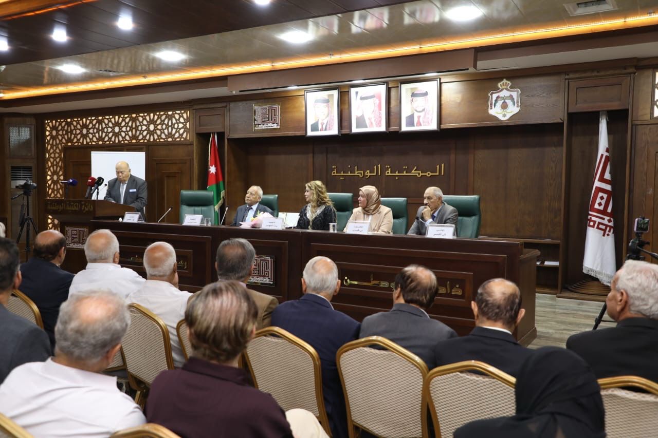 وترحم الحضور على الاديب والكاتب زياد الجيوسي الذي كان مقررا أن يشارك في هذه الندوة والأديب زياد جيوسي يعد من الأصوات الأدبية والثقافية المتميزة في المشهد العربي، فقد جمع بين شغفه بالكتابة وسعة اطلاعه على قضايا الفكر والإنسان تميز بأسلوبه الراقي الذي يمزج بين جمال اللغة وعمق الرؤية، فكانت مقالاته ونصوصه مساحة للتأمل والنقد البناء، ولتسليط الضوء على قضايا الوطن والإنسان والهوية الثقافية كما أسهم الجيوسي في ترسيخ قيم الحوار والانفتاح عبر نتاجه الأدبي والنقدي، ليكون حضوره علامة بارزة في نشر الوعي الثقافي وتعزيز مكانة الكلمة كأداة للتغيير والإضاءة في المجتمع.