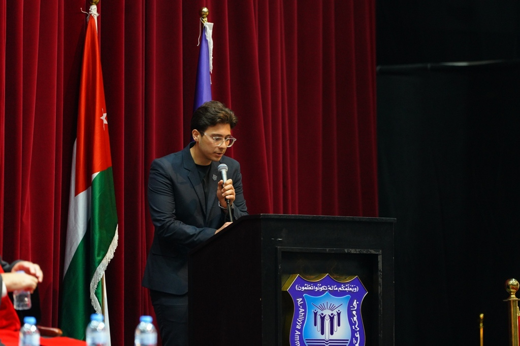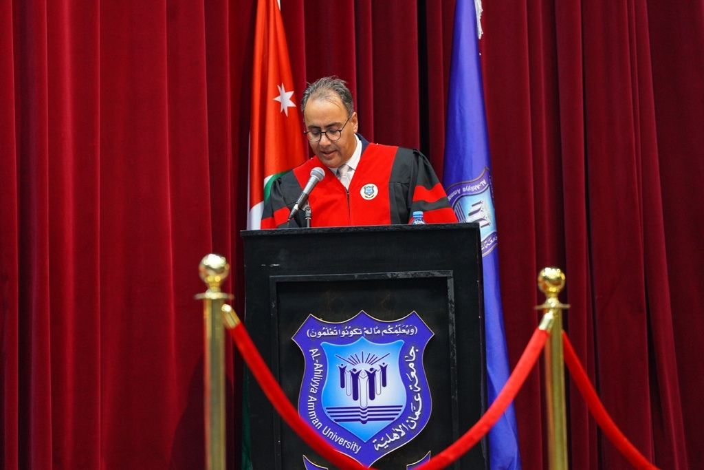 في هذا اليوم المفعم بالفخر والفرح، يسعدني ويشرفني أن أرحب بكم أجمل ترحيب في رحاب جامعتكم – جامعة عمّان الأهلية، أولى الجامعات الخاصة في الأردن، حيث نحتفل بتخريج نخبة متميزة من طلبة كليات: