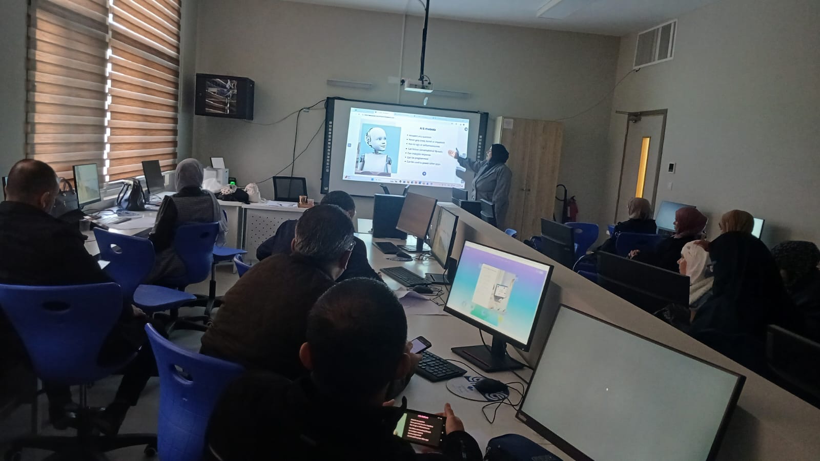 قدّم التدريب للمعلمين أساسيات الذكاء الاصطناعي، واستعرض كيفية الاستخدام الفاعل والمسؤول لروبوتات الدردشة القائمة على الذكاء الاصطناعي في السياقات التعليمية. وكذلك، تناول المشاركون تطبيقات صفّية عملية، شملت تكييف مواد تعليمية تستجيب لاحتياجات الطلبة وإنشاؤها، وتعزيز تفاعل الطلبة وممارسة اللغة، ودعم الدروس الشاملة والتفاعلية. وأسهمت الأنشطة وقوالب الأوامر الجاهزة في تمكين المعلمين من مواءمة أدوات الذكاء الاصطناعي مع السياق المحلي والمنهاج وواقع الصفوف الدراسية.